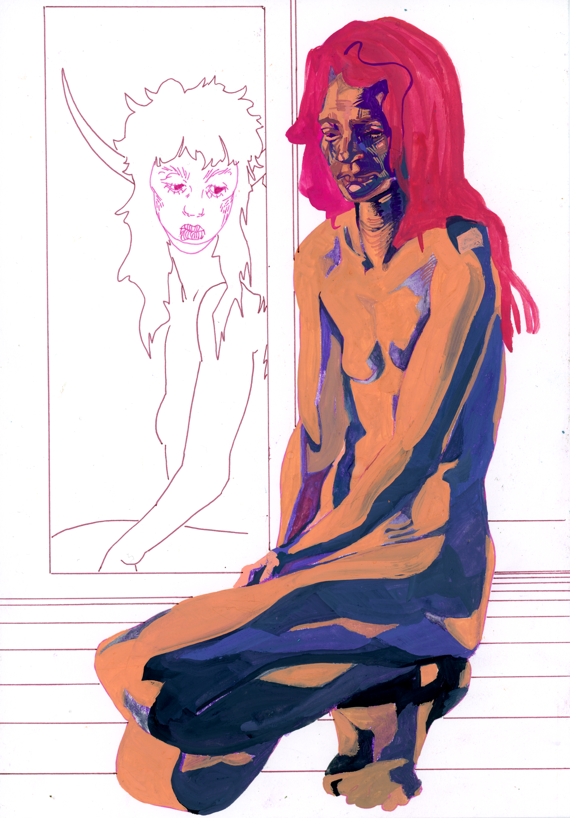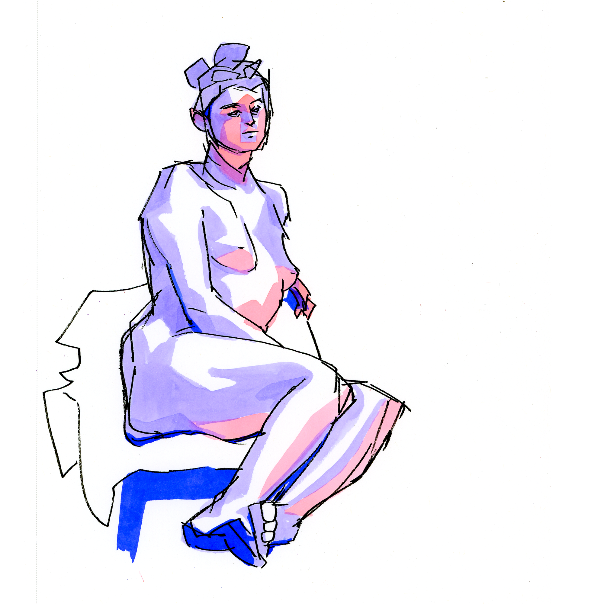 Ori’s portraiture is where they lavish joy in representing light with unusual color choices. They draw from the the shape-eliciting emotions of the abstract expressionists in how each shade is constructed on the face. Their lines and brushstrokes challenge and harmonize the stark shapes until the image is (somewhat) recognizable.