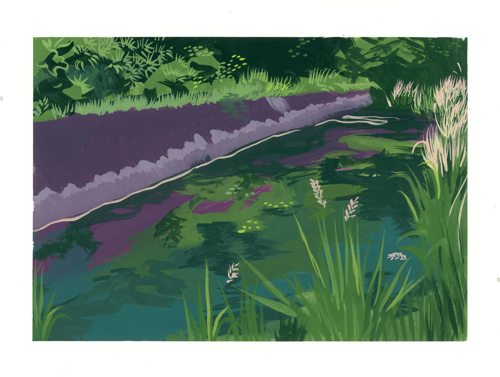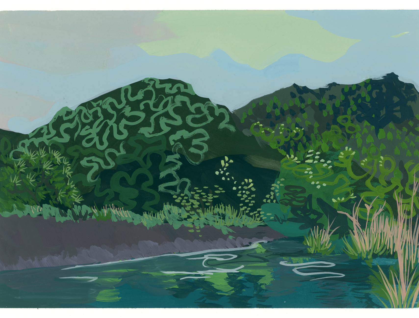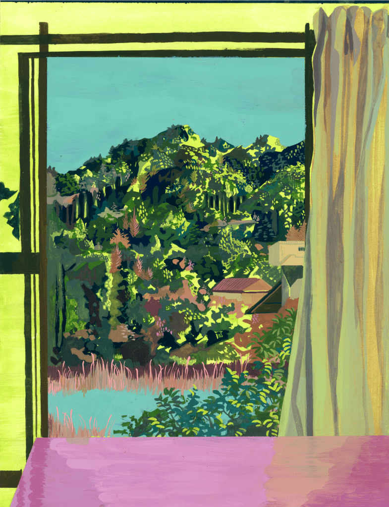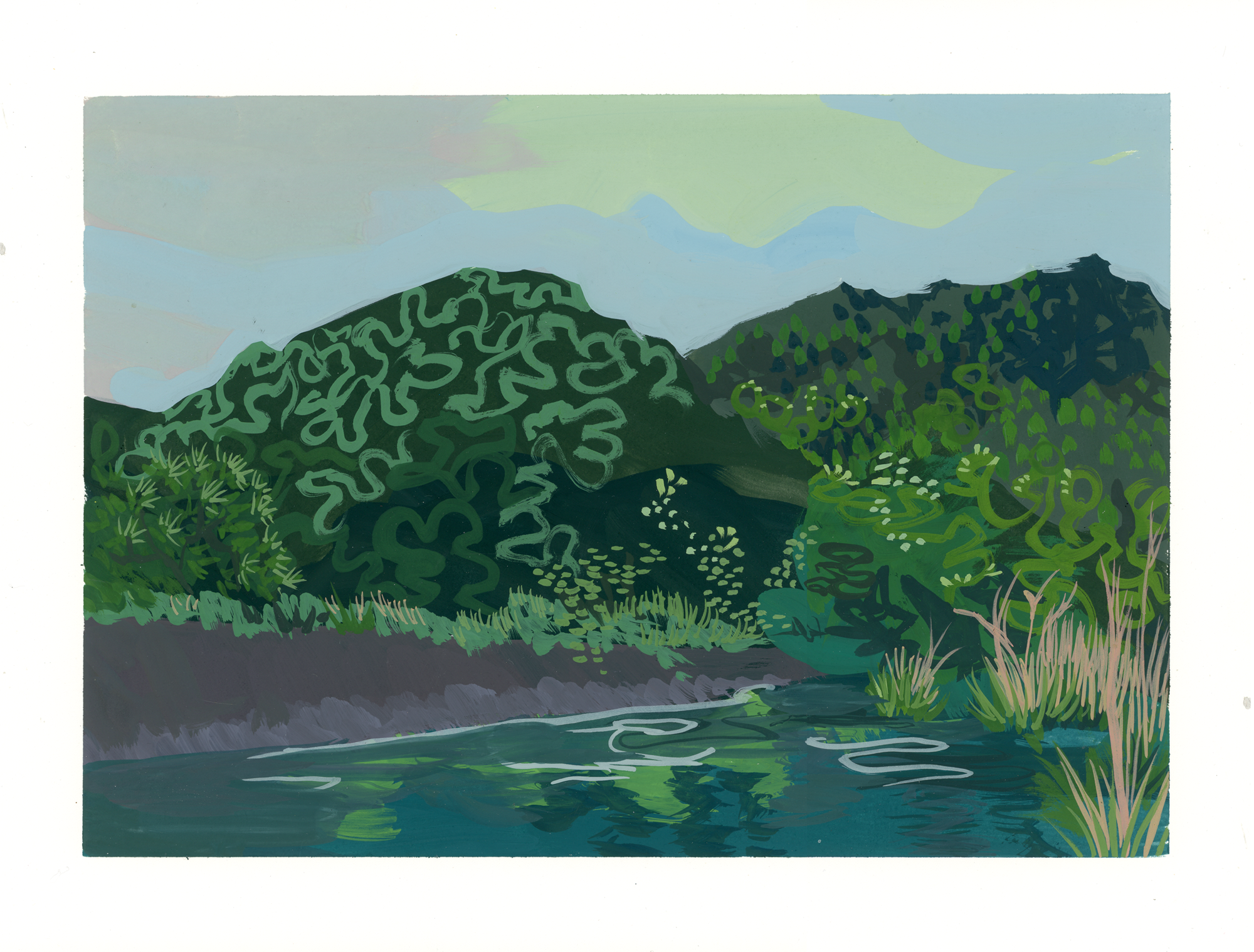 We sprout and return from the earth. Ori’s landscapes are painted in plein air (on site) through a mental technique they call organic camera. The goal is to elucidate the relationship between a person and a space through paintings. For these, Ori would select a specific, fixed location and paint a sunset from the same spot at the same time over many days.